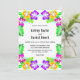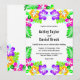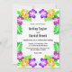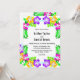 Este elegante convite de casamento tropical é perfeito para um casamento de verão moderno. O simples design apresenta flores amarelas, roxas e cor-de-rosa floridas com tipografia preta elegante sobre fundo branco.