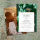 Este convite de casamento floral em verde esmeralda e dourado pode ser personalizado com suas informações em tipografia moderna e uma foto especial no verso. Projetado por Thisisnotme©