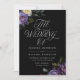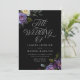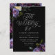 Convites de casamento floral elegantes, com buquês de flores roxas e marfim, folhagem verde-escura e bagas escuras nos cantos. "O Casamento de" é exibido na elegante e moderna tipografia. Personalize o convite de casamento floral roxo com seus nomes e detalhes de casamento. A design coordena-se com a nossa coleção de casamentos Moody Gothic Floral.