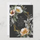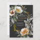 A cor elegante e o design geométrico tornam este convite espantoso. Este design apresenta um dramático fundo preto, um adorável desenho botânico floral desenhado, e tipografia personalizada com uma borda geométrica na frente. O verso apresenta uma lindíssima tapeçaria floral.