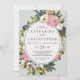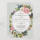 Este convite para casais florais pintado é perfeito para um casamento moderno. A elegante e romântica design apresenta uma coroa de lindas flores acrílicas pintadas, cor-de-rosa e branco, com pop de roxo colorido, azul, laranja e amarelo.