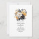 Convite floral preto e branco com sotaque de ouro. Ideal para um casamento no jardim. O código QR no verso direciona para o seu local de casamento onde o pessoas pode aprender mais e rsvp.