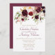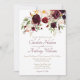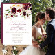 Um Convite Floral para Casamento Profundo Burgundy desenhado em tons de burgundy e esticado acentuado com ramos verdes claros e escuros. O texto, tanto em burgundy como em taupe, inclui os nomes da noiva e do noivo e os detalhes do convite para o casamento de cheio, num fundo branco suave. O reverso desta carta é uma profunda sombra de burgundy para elogiar a frente. Para personalizar este convite, basta usar a nossa modelo fácil para substituir o texto de amostra por seus detalhes. As placas de acessórios correspondentes estão disponíveis.