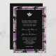 Sombras elegantes de púrpura, lavanda e branco, esses convites florais de casamento mostram flores de magnólia de cor d'água e seus detalhes de casamento em letras brancas chicas contra um fundo preto. ITENS CORRESPONDENTES na nossa coleção.