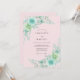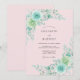 Flores delicadas em aquarela em tons suaves de menta e aqua se misturam com folhagem verdejante, criando uma atmosfera etérea e romântica. Este design evoca uma elegância fresca e natural, perfeita para uma celebração caprichosa. A paleta de cores suaves sugere um clima sereno e edificante.