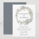 Defina o tom para o seu dia especial convidando perguntas com nossos convites para casamento Românticos de Watercolor White e Blue Floral Wreath. Os elegantes convites para casamentos florais apresentam os seus nomes rodeados por uma coroa aquática cor branca e flores azuis, cinzas verdes e ardentes/folhagem azul clara. Personalize os convites adicionando os detalhes do seu casamento abaixo. Os belos convites de casamento revertem para uma sólida cinza de ardósia.