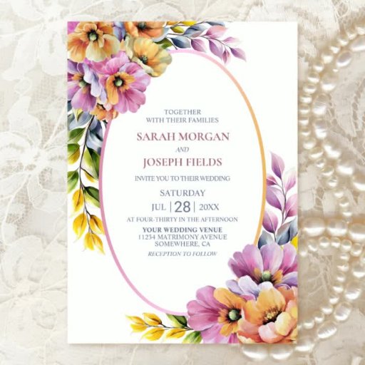 Convide seus amigos e entes queridos para comemorar sua união com este moderno, tudo em um convite de casamento, apresentando flores cor-de-rosa e laranja inspiradas no amor duradouro. O texto personalizável permite adicionar sem esforço os nomes da noiva e do noivo, a data do casamento e os detalhes necessários de sua celebração. Projetado para o casal econômico, a localização do local de recepção, a solicitação de resposta RSVP, os detalhes de acomodação e qualquer outra informação que seus convidados possam exigir podem ser incluídos no verso deste convite, economizando dinheiro em papelaria extra. Uma variedade de tipos de papel e estilos de canto estão disponíveis para seus convites exclusivos, juntamente com a opção de download se você preferir um formato digital.