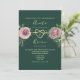 Este convite de casamento verde esmeralda elegante apresenta flores rosa empoeiradas e lavanda, um coração de corda dourada romântico e folhagem botânica suave. Perfeito para casamentos de primavera, jardim ou rústico-boho, combina tons de joia ousados com charme floral delicado. Com um layout refinado e paleta de cores atemporal, este convite é ideal para casais que buscam um design romântico, mas ousado para celebrar seu dia especial.