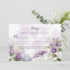 Rustic Boho RSVP com lavanda, roxo e flores silvestres de cor d'água mauve em um fundo de cor d'água púrpura claro. PARA ITENS CORRESPONDENTES, ENVIE-ME POR CORREIO ELETRÔNICO EM SHUTTERBUG600@YAHOO.COM.** NOTA *** Se precisar de ajuda para este convite ou para pedidos personalizados com os quais necessita de ajuda, não coloque este produto no carrinho. Em vez disso, envie-me um e-mail com sua solicitação em shutterbug600@yahoo.com. Toda remessa e impressão é manipulada pela Zazzle e as perguntas sobre seu pedido devem ser direcionadas para o suporte da Zazzle: https://www.zazzle.com/about/ask. Não tenho acesso à sua conta e não posso fazer alterações depois que você tiver feito seu pedido. Não tenho acesso à sua conta e não posso fazer alterações depois que você tiver feito seu pedido. Além disso, o CHAT não está vivo, mas respondo dentro de 24 horas.