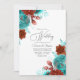 Rosas de cor d'água turquesa e coral e convites iridescentes para casamento de folhagem tropical com tipografia tradicional desenhada para ser rápida e facilmente personalizada de acordo com os detalhes do seu evento.