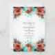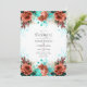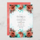 Rosas de cor d'água turquesa e coral e convites iridescentes para casamento de folhagem com tipografia de tendência, projetados para serem rápida e facilmente personalizados de acordo com as especificações do seu evento.