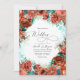 Convite Casamento Floral Russo-Turquesa e Coral