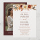 Compartilhe sua história de amor com este convite de fotos do casamento no outono, com elegantes florais de outono em tons sazonais quentes. Um equilíbrio perfeito entre a personalização moderna e a elegância do eterno, este convite mostra sua foto ao lado de florais e detalhes de casamento bem arranjados. Ideal para casamentos rústicos, ao ar livre ou com temas de outono, o design limpo e na moda está pronto para impressão e inesquecível.
