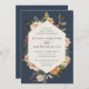 Um belo convite floral para o casamento em outono, com seus nomes em letras de escrita caligráfica, aninhado dentro a fronteira geométrica de flores de aquarelas e botânicos em tons de terra mutada de burgundy marsala, blush, marfim e sábio verde. Personalize com seus detalhes de casamento embaixo.