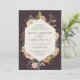 Um belo convite floral para o casamento em outono, com seus nomes em letras de escrita caligráfica, aninhado dentro a fronteira geométrica de flores de aquarelas e botânicos em tons de terra mutada de burgundy marsala, blush, marfim e sábio verde. Personalize com seus detalhes de casamento embaixo.