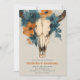 Convide seus hóspedes em estilo com este convite de casamento russo do boho com um crânio de vaca detalhado, enfeitado com laranja queimado e flores de chá. Misturando charme ocidental com elegância floral, é perfeito para deserto, campo ou casamentos ao ar livre. Totalmente personalizável com seus nomes e detalhes de eventos, este design dá o tom para uma celebração ousada e bonita.