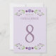 Cartões russos de números de mesas de casamento chic apresentam um quadro floral simétrico de lavanda, lilás, violeta e roxo de ameixa com folhas botânicas verdes com um olhar desenhado à mão que enquadra o design.