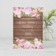 Apresentando bonito rosas cor-de-rosa em um fundo de madeira rústica e seus detalhes personalizados de casamento definidos em tipografia elegante. Projetado por Thisnotme©