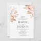Este convite de casamento rústico boho apresenta flores rosa, marrom e bege com uma moldura de rosas que cercam os detalhes do seu casamento. Dê aos seus convidados um primeiro vislumbre maravilhoso do seu casamento a vir - este cartão será uma adição fantástica aos seus eventos de casamento.