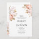 Este convite de casamento rústico boho apresenta flores rosa, marrom e bege com uma moldura de rosas que cercam os detalhes do seu casamento. Dê aos seus convidados um primeiro vislumbre maravilhoso do seu casamento - este cartão será uma adição fantástica aos seus eventos de casamento.