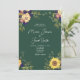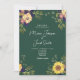 Convite de casamento de girassol floral rústico, botânico, moderno e elegante com verso monograma.