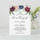 Convites de casamento florais em aquarela rústica elegante com belas flores campestres em rosa beije, burgundy e azul marinho. A parte de trás do cartão é em rosa beije moderno. Adicione facilmente os detalhes personalizados do seu casamento.