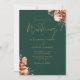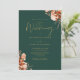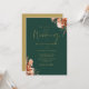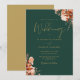 Este convite de casamento elegante com flores rústicas pode ser personalizado com suas informações em tipografia dourada sofisticada em um fundo verde esmeralda. Criado por Thisisnotme©