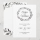 Convite de casamento elegante com decoração de grinalda desenhada. Nome e data escritos, endereço do local, mutáveis.