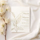 Simples, elegante, branco e ouro, a folga floral deixa convites para casamento. Este convite para folhas florais na moda romântico é perfeito para qualquer garota chique clássica e sofisticada. Este design é ideal para um evento de festa elegante e de tendências. Personalize este design com sua mensagem e informações personalizadas. Todas as designs são impressas