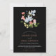 Convites Simples de Casamento Floral Preto e Rosa - Design Botânico Elegante com Tipografia de Script Rosa. Anuncie seu casamento em estilo com nossos convites modernos de feiticeiros mostrando uma mistura cativante de flores azuis e rosa, complementada por um verde exuberante sobre um fundo preto impressionante. O elegante design botânico é acentuado pelo uso da tipografia de roteiro rosa, acrescentando um toque de romance e sofisticação. Com uma estética minimalista, esses convites únicos equilibram perfeitamente a modernidade e a beleza natural. Capture a essência do seu dia especial com esta fantástica combinação de tipografia de script azul, rosa, verde e elegante, definindo o palco para uma celebração inesquecível.