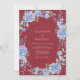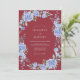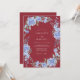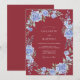 Este design apresenta um impressionante fundo marrom profundo que define um tom sombrio e sofisticado. Aglomerados elegantes de hortênsias azuis pervinca e rosas suaves criam um belo contraste contra o rico fundo carmesim. Folhas delicadas de sage verde e raminhos botânicos adicionam um toque de textura natural e movimento orgânico.