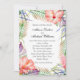 Este convite de casamento floral colorido é perfeito para casamentos temáticos tropicais, casamentos de destino ou casamentos de praia. Frentes de palma floral de aquarelas, flores de hibisco e gengibre seu texto com estilo Aloha. O lado inverso deste convite é mostrado em uma cor sólida de pêssego correspondente que pode ser modificada para sua escolha de cor. Edite o texto do exemplo com os detalhes do casamento. Você pode adicionar ou remover linhas de texto conforme a necessidade e alterar o texto de acordo com sua preferência pessoal. Aloha!