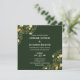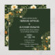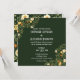 Um convite para o casamento floral verde escuro, com uma corda decorativa de ouro girando e flores brancas, folhas e vinhas. Ideal para um casamento no jardim, este convite contém texto na frente que pode ser personalizado com os seus próprios detalhes do dia do casamento, e um padrão floral sólido no verso.