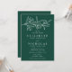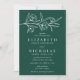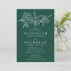 Convites florais elegantes com flores brancas esboçadas e folhas perto do topo do convite com fundo verde-floresta. Personalize o convite de casamento botânico com seus nomes e detalhes de casamento abaixo em letras brancas clássicas. Projetado para coordenar com a nossa coleção de casamento Floral.