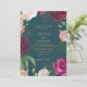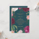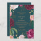Você está planejando um casamento romântico, rústico, country ou celeiro? O fundo verde esmeralda traz seus detalhes em ouro e flores em vermelho e rosa. A aquarela floral verde flores brancas dá aos seus convites de casamento um brilho especial