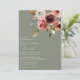 O Convite Floral Elegante Sage Green é uma representação espantosa de sofisticação refinada, perfeitamente talhada para a noiva moderna que busca um toque refinado para o seu inverno ou celebração de casamento outono. O convite combina perfeitamente uma paleta de tons verdes ricos e sábios, inspirados pela elegância silenciosa do inverno e pela quente e suja altura do outono, criando uma estética convidativa e eterno. O plano de fundo do convite apresenta uma lavagem de aquarela macia em vários tons de verde sábio, fornecendo um cenário sutil e gracioso para todo o design. Delicar elementos florais, meticulosamente pintados à mão em aquarela, enfeitar os cantos e bordas do convite, infundir um toque de beleza natural e capturar a essência de um jardim florescente. A tipografia empregada no Convite Floral Elegante Sage Green é formal e graciosa. As fontes escolhidas são cuidadosamente selecionadas para transmitir uma sensação de elegância do eterno, garantindo que o convite mantém um apelo clássico. O texto é apresentado numa combinação de escrita sofisticada e fontes serif refinadas, criando um equilíbrio harmonioso entre a estética moderna e o encanto tradicional. Para evocar a atmosfera acolhedora de queda ou casamento no inverno, os designers incorporaram detalhes sutis, como folhas pequenas e motivos florais, que refletem as mudanças sazonais. Estes elementos não só contribuem para o tema geral, como também reforçam a ligação do convite à época de núpcias escolhida. O layout do convite é cuidadosamente organizado, com amplo espaço em branco que permite aos elegantes elementos do design respirarem. O uso de linhas e bordas formais acrescenta um toque de estrutura, contribuindo para o sentido geral de formalidade que muitas vezes é desejado para casamentos. Em resumo, o Convite Floral Elegante Sage Green é uma obra-prima de design, combinando perfeitamente a elegância eterno dos tons verdes sábios com delicados elementos florais de aquarela. A incorporação de detalhes inspirados no outono e no inverno garante sua relevância para as celebrações sazonais. Este convite é uma escolha perfeita para a noiva moderna que busca um convite que não só é visualmente atordoante, como também captura a essência de uma sofisticada e encantadora celebração de casamento.