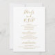 Este convite de casamento elegante com folhas de verde botânico dourado pode ser personalizado com suas informações em tipografia sofisticada. Com todas as informações do seu dia especial de casamento no verso, incluindo seu RSVP, acomodação e detalhes adicionais. Criado por Thisisnotme©