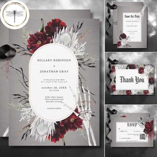 Convite Casamento Floral Vermelho de Amor e Ossos