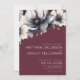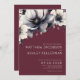 Este simples e fofo design de convite de casamento moderno apresenta um fundo burguês na frente e no verso. As flores pretas, cinzas e negras de anêmona, pareadas com fontes de cinza clara e cartazes modernos, criam um olhar clássico, mas caprichoso. Perfeito para o outono, outono ou casamentos no inverno, esta design traz um toque de elegância sazonal para o seu dia especial. O rico fundo burgundy complementa os sotaques florais lindamente, fazer uma escolha atraente para os seus convidados. Totalmente personalizável, você pode editar todo o texto para suas próprias informações e até mudar a cor de fundo para corresponder às cores do seu casamento, se necessário. Este design faz parte de uma coleção com outros estilos semelhantes, fornecendo várias opções para se adequar às suas preferências. Convocação de Casamento Floral Branco Vermelho e Moderno Elegante. Disponível como um convite impresso ou como um convite digital para download que você pode enviar por e-mail ou que foi impresso localmente!