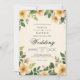 Um arranjo delicado de flores amarelas suaves e de folhagem verde-esfarelada agride esta design, evocando um sentimento de romance gentil e beleza natural. A morna paleta convidativa cria uma atmosfera de elegância subestimada.