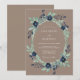 Um design profundamente atmosférico com flores azul-marinho exuberantes e folhagem verde-sage delicada, dispostas em uma grinalda orgânica e fluida. Essa composição artística evoca um senso de elegância natural e profundidade romântica, perfeita para uma reunião sofisticada.