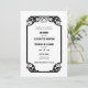 Um convite de casamento branco e preto no oeste do país, com uma elegante, sofisticada, mas simples e elegante moldura decorativa e letra ocidental. Romântico e cheio do charme ocidental do país, é uma escolha adorável para um casamento de celeiro, um casamento ao ar livre, um casamento de churrasco ou qualquer cenário rústico com um tema de casamento country Western, cowboy que também é formal e elegante.