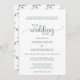 Esta simples carta de convite formal para caligrafia verde é perfeita para um casamento rústico ou moderno. A design minimalista apresenta uma elegante letra de escrita de pincel e um adorável coração feminino. O suporte apresenta um padrão clássico de folhas e ramos.