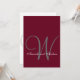 Elegante Burgundy Cinza Monograma Casamento Formal. Uma simples cor de fundo burgundy com uma cinza inicial em uma letra elegante. Perfeito para muitos temas diferentes de casamento, incluindo um casamento outono, ou casamento no inverno com esta combinação de cores. Design por Elke Clarke ©. Personalize com seu monograma, nomes e cores de casamento. Uma modelo versátil para te ajudar a criar seus próprios convites de casamento. Adicione todas as suas informações de casamento na parte traseira do cartão usando os prompts de menu fáceis de usar do Zazzle.