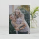Este convite formal de casamento romântico para fotos de caligrafia é perfeito para um casamento simples. O clássico design moderno apresenta espirais ricos e turbilhões brancos com magnífica e elegante tipografia à mão. Personalize com duas fotos de noivado, uma na frente e outra atrás.
