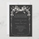 Delicar flores silvestres e gramíneas se entrelaçam sobre uma arca de boho para formar uma adorável estrutura de casamento floral neste convite de casamento clássico, formal, elegante preto e branco com um tema de flores silvestres. Design elegante e eterno para o romântico moderno, esse convite floral combina o tema formal preto-e-branco com a estética feminina e lúdica das flores silvestres para a perfeita mistura de elegantes sofisticados. O casamento clássico moderno combina-se perfeitamente com os elementos florais para um toque contemporâneo mas eterno.