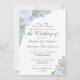 Este maravilhoso convite para o casamento apresenta um design de música 'boho' rústico com rosas de cor d'água pintados manualmente e flores em tons de azul poeirento claro. O buquê elegante inclui prigos de lavanda, eucalipto, hálito do bebê e outras folhas verdes, folhagem e verde, tudo num fundo branco clássico. Este convite contém a inscrição em rico e a redação formal onde o casamento está sendo hospedado pelos pais da noiva. Uma maravilhosa maneira de convidar seus amigos e família para compartilhar sua alegria em seu dia especial.