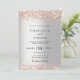 Um convite formal para o casamento. Um fundo de olhar mal prateado. Decorado com faíscas rosa douradas, confetti. Personalize e adicione seus nomes e detalhes da festa.