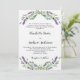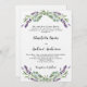Um fundo branco decorado com flores lavandas e verde de eucalipto. Personalize e seus nomes e detalhes.