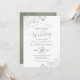 Este belo convite para o casamento é simples, tradicional e elegante. Apresenta um belo design com fritas de renda de folha fina de cinza prateada e caligrafia verde de sábio em um fundo branco clássico. A formulação é formal, sendo o convite emitido pelos pais da noiva. Uma maneira maravilhosa de convidar seus amigos e família para fazer parte de seu dia especial.